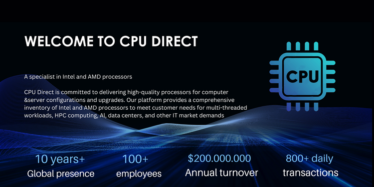 CPU Direct is committed to delivering high quality CPU for computer configurations and upgrades. Our platform provides a comprehensive inventory of Intel and AMD processors to meet customer needs for multi-threaded workloads, HPC computing, AI, data centers, and other IT market demands